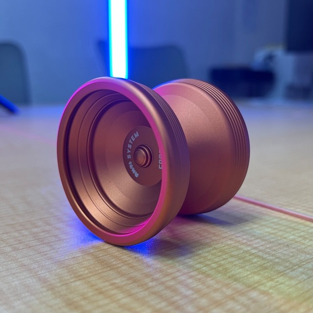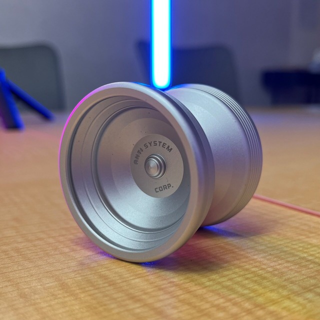 商品写真、商品解説文、メーカー引用 SYSTEM CORP.という名前はVaporwaveのジャンルの一つでもあるMallsoftとの関連性、ヨーヨーのトリックを作る事自体が、仕組み(システム)を創る。 我々自体がシステムコープなのではないかという考えから着想を得ました。 ヨーヨーの特徴としてはリムに施されたグルーヴ(溝)、Hプロファイル形状で軽く良く回りとても柔らかいヨーヨーです。 表面処理はサンドブラスト。 63gという軽い重量ながら強い回転力をもち、投げ出しが若干重く感じますが、実重量が軽いため疲れる事なく長くプレイをすることができます。 Diameter : 54mm Width : 46mm Weight : 63g Materials : 6061Al Bearing : C size